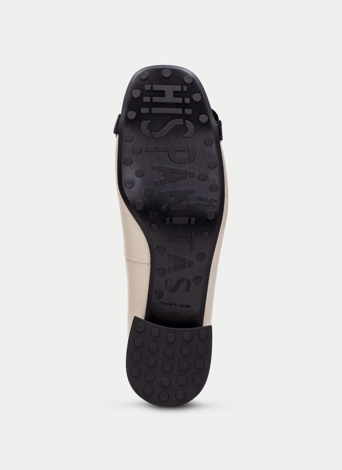 Bailarina bicolor de punta cuadrada con detalle de cadena en el empeine.