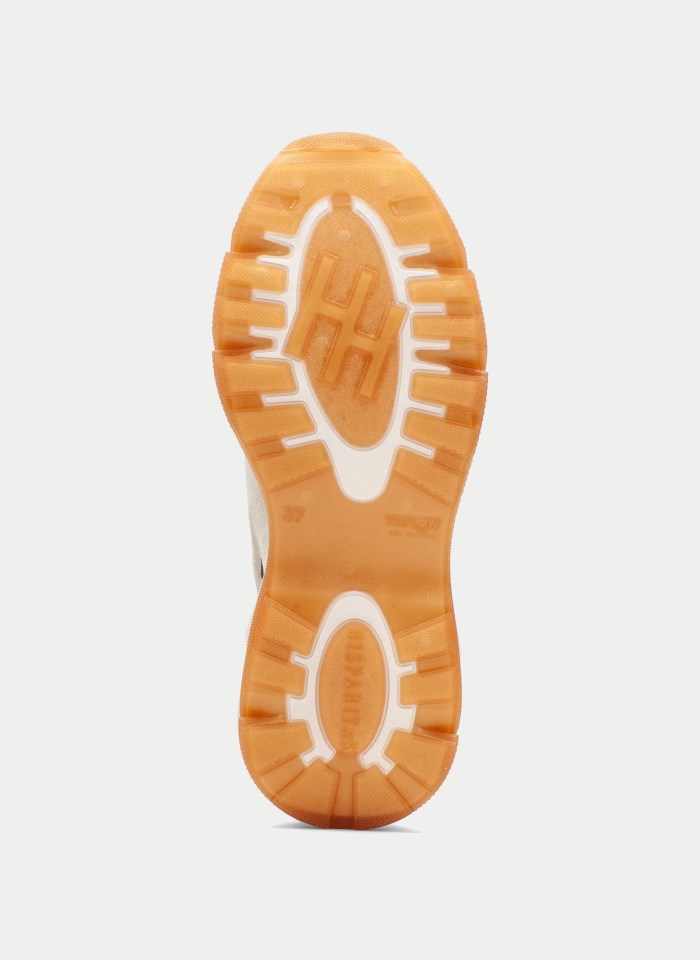 Deportivo abotinado acordonado y lengüeta en tejido de borrego de origen no animal.