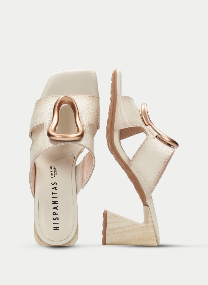 Sandalia de diseño moderno con adorno metalizado en el empeine.