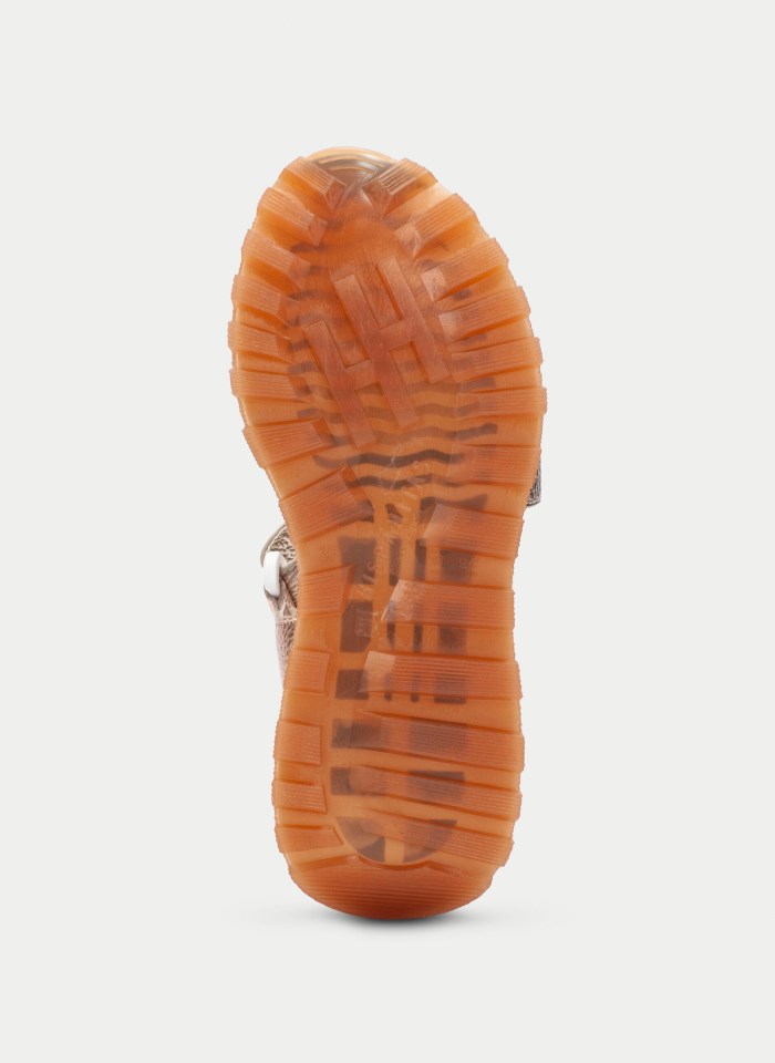 Tiras cruzadas fabricadas en piel que aportan un toque contemporáneo y sofisticado.